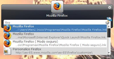 A continuación se escribe el nombre de la aplicación muchas de las veces no es necesario escribir todo el nombre basta con escribir unas cuantas letras y launchy sugerirá con icono el programa de uso mas frecuente con las fechas arriba y abajo se puede acceder a la lista de programas.